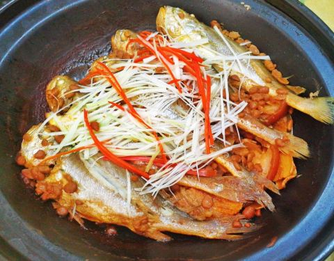 - 生焗黄瓜鱼,35元,这道菜我最喜欢,砂锅焖焗,三条黄瓜鱼很新鲜,很入味