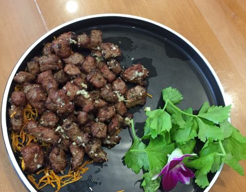 友强海鲜大排档位于和悦大酒店对面,是一家开了十几年的老排档店了,它家很大一排,但是海鲜池区和餐厅就坐区是分开的,可以在海鲜池区下好单在转战到隔壁店面用餐。 友强用餐区很是宽敞明亮,也是比较舒适的,也是是这附近环境比较好的大排档店。不得不称赞的一点就是它家用餐区有一个屏幕,上面监控着店内厨房的举动,让顾客很好的了解自己食用的菜品情况。 招牌煎膏蟹,蟹膏饱满、肉质鲜美。手工虾卷,两款炸物拼盘。特色小牛肉,稍有些不那么心仪,融入了黑椒风味,但味道不上不下的,建议可以完全做成黑椒风味或者不要融入黑椒彻底保留牛肉本身的味道。