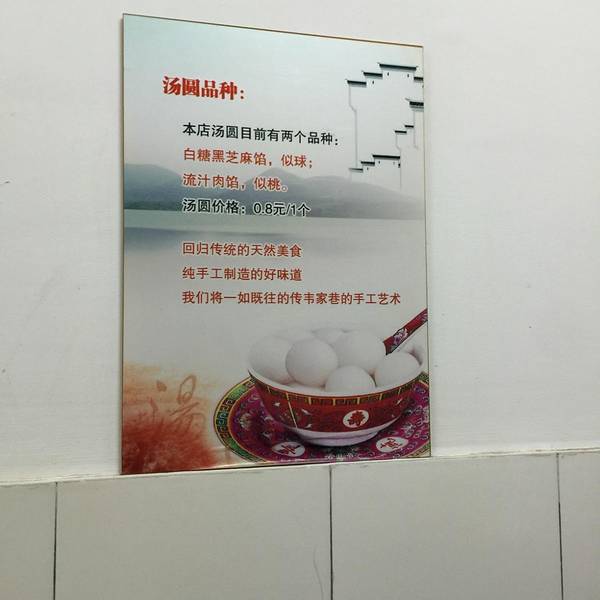 我吃了六个,味道真心不错,值得推荐! 韦家巷汤圆店内只有两种汤圆售卖:白糖黑芝麻馅,似球