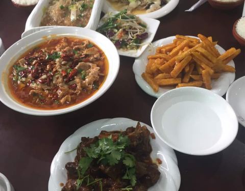 上菜很快 估计着是因为周一的原因吧。很好吃 菜量大,推荐疙瘩汤。感觉土豆泥又少了。这是在学校周边比较好的吧。感觉有点贵,但是菜量大,我们没吃完。饺子没以前好吃了。希望店家改进。