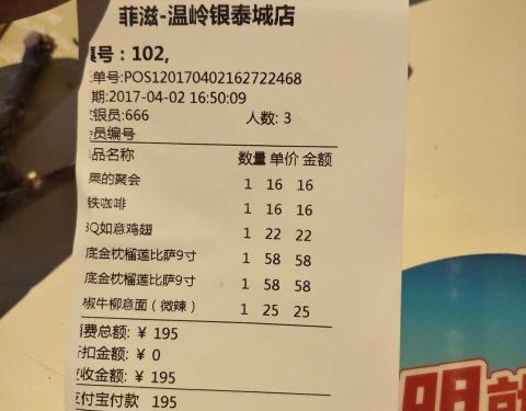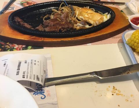 味道很不错,推荐,下次还要去吃。位于银泰四楼,周末和同事一起吃的,点了T骨牛排、超级披萨、意面、烤翅