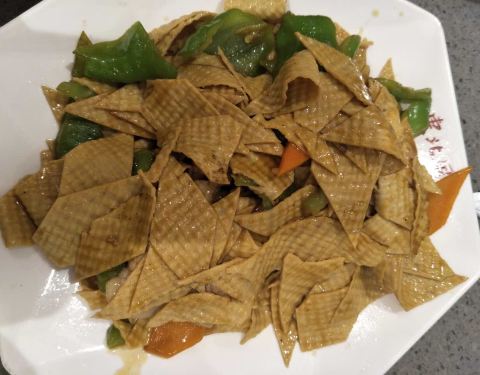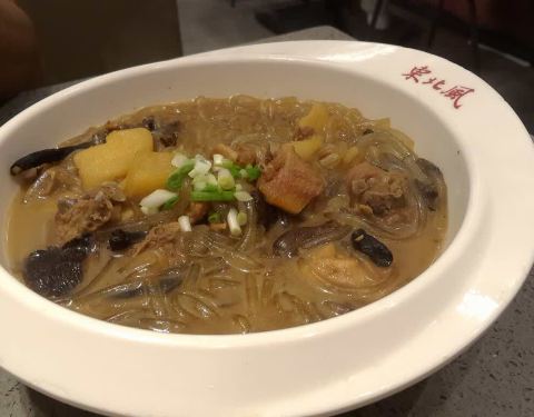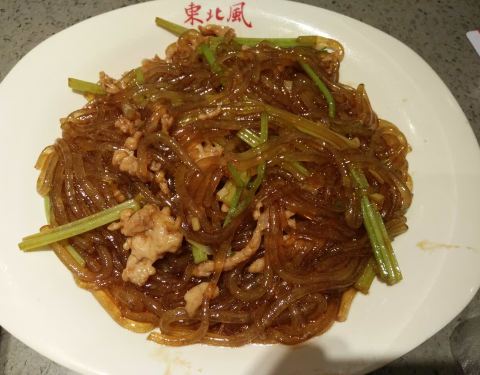菜量真的很大,大白菜炖粉条一大碗量真的很足,粉条很有嚼劲,还有五花肉在里面,肉汁的味道已经渗透在大白菜里面。孜然牛肉和炒三姑做的很家常。东北冷面量真的足,面条很爽滑。