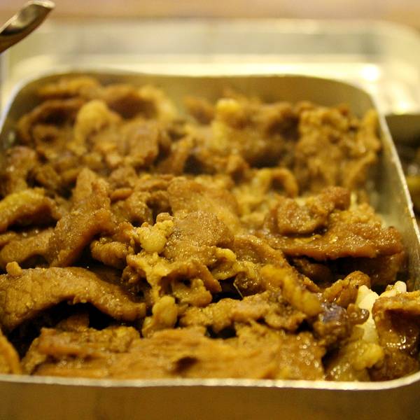 #肥瘦# 12元, 真的肥瘦相间啊,我喜欢这种,油都煮出去了,一点都不腻,拌饭吃,老香了,还不咸,味道刚刚好。就是貌似肉不太够,我吃了全部的肉和,一半的饭,配的酸菜汤,超级酸,算是解腻吧,还有咸菜条。我吃饭不咋配咸菜,喜欢靠吃肉饱。 #护心肉# 15元,全是瘦肉,主要是老公吃,他吃了一次之后,又自己去吃了一次鸡肉饭,是熏鸡的那种感觉的,应该他也认为这家的东西很好吃。 这家也就几种盒饭,价格都在12-18元,经济实惠。