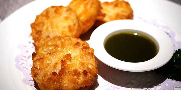 流心芝士藕饼:看似藕饼又是虾饼!以手打虾胶加上芝士酿入藕饼炸至金黄。一口咬开,融化的芝士带来爆浆口感,莲藕爽脆,虾肉弹牙,口感层次十分丰富,大人小孩都爱吃。