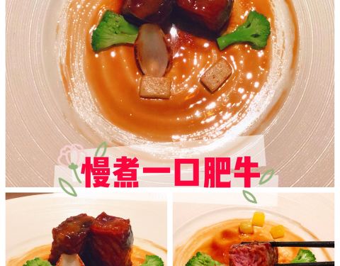 「黄金脆皮鸡」这大概是我最近吃过最好吃的鸡了!外皮脆脆的,里面的肉嫩嫩的,超级大块,不沾酱料也很好吃。我宣布,这个假期我迷恋的乳鸽和它一比瞬间秒杀了…… 「浓汤娃娃菜」真的是浓汤啊!有点花胶鸡火锅锅底的感觉~娃娃菜也很新鲜,吃起来超级软糯的! 「慢煮一口肥牛」最后一道菜,压轴菜,一人一份,一共三份。牛肉据说是和牛?酥酥软软却又带点嚼劲,某人说比我们在石垣岛吃过的石垣牛肉还要棒!本来已经吃很撑了,但却对这道菜欲罢不能。唯一的缺点就是偏咸了。 好久没有吃到如此惊艳的餐厅,简单的菜却能做出让人难以忘怀的味道,逸谷很值得再刷一次!
