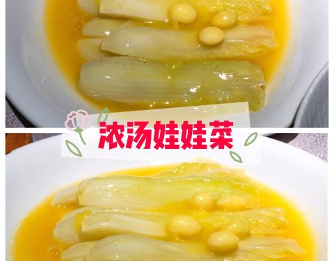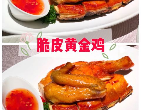「黄金脆皮鸡」这大概是我最近吃过最好吃的鸡了!外皮脆脆的,里面的肉嫩嫩的,超级大块,不沾酱料也很好吃。我宣布,这个假期我迷恋的乳鸽和它一比瞬间秒杀了…… 「浓汤娃娃菜」真的是浓汤啊!有点花胶鸡火锅锅...