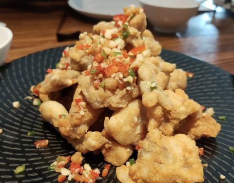 - 椒盐牛蛙好吃,裹粉很薄,炸的刚刚好,牛蛙也是很大个的。酒香草头,草头嫩,有酒的香味