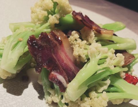 - 腊肉炒有机花菜,新鲜度很好,口感清爽。招牌鱼头汤,必点的,一点不腥气,鱼肉很嫩