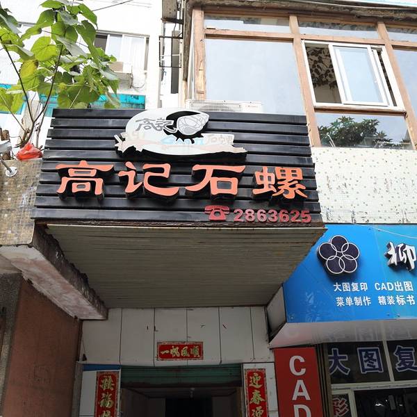 路过了评分高的绿豆饼店 各个品种买了几个 结果,哎,没吃 屁颠屁颠沿路走到了高记石螺 这门面挺好认 但是总觉得哪里不对 好吧,它在二楼 你得经过那有点破烂的楼梯 然后豁然开朗 这个点,就我一个 老板都打着赤...