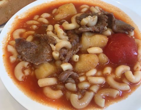 香港很多所谓的冰室其实都是港茶餐厅,但皇后冰室却是走的西方路线,也许是有“皇后”二字吧,菜色基本上都是西餐。芝士肉酱 意粉、香煎黑椒鸡扒、烟熏三文鱼忌廉意面.....点的一碗罗宋汤,除了常见的蕃茄酱汁外,还加了些意大利通粉,还有土豆,算是蛮丰盛的一碗,味道还行