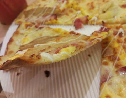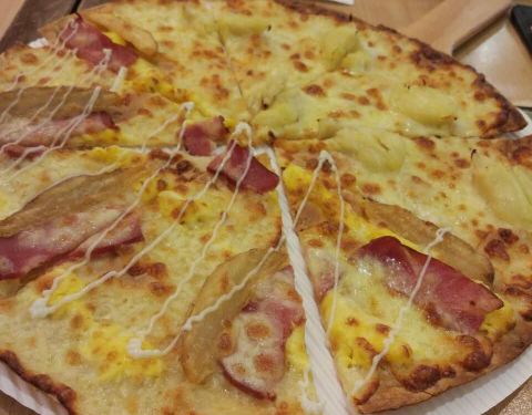 第一次尝试薄脆比萨,够薄够脆,建议薯角和榴莲双拼。