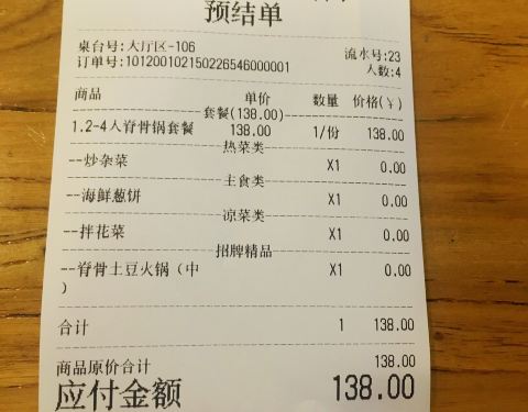 这次是二刷,体验过程非常糟糕!要不是考虑到服务员阿姨的辛苦,真想给一星 。 [环境]环境还是很不错的,装修风格也融合了传统与现代,很唯美。 [服务]前台小哥哥给差评!我跟他说忌口辣,他家脊骨锅太辣了,问...这次是二刷,体验过程非常糟糕!要不是考虑到服务员阿姨的辛苦,真想给一星 。 [环境]环境还是很不错的,装修风格也融合了传统与现代,很唯美。 [服务]前台小哥哥给差评!我跟他说忌口辣,他家脊骨锅太辣了,问能不能换成清汤锅,回答说不可以,还说他们炖了两个小时等等,后来又说是微辣,我说第一次你家前台就这么说的,结果辣的要命,呛得直咳嗽,根本吃不了!不远处的万寿家就能免辣,你炖了几个小时我吃不了有什么用?!这么简单的道理你还不知道吗?!只有顾客说好吃才是好吃!你说的好吃那叫王婆卖瓜自卖自夸!之后我让他打小票,答应的痛快,20分钟之后还没有小票,我又去找他,才说我还没打呢,现在给你打,不到5秒钟小票就出来了,这服务也太差了!难道前台小哥哥灵魂出窍了吗?! 「脊骨土豆火锅」中锅,超级辣!一口也吃不了!跟阿姨说了三遍,终于同意给换成水,然而脊骨浸泡时间太久了,依然超级辣!真不想浪费食物,又确实一口也吃不了,最后都扔了。 「炒杂菜」青菜粉条混搭,还可以。 「拌花菜」最初上来是全辣的,我跟阿姨说我不要了!已经说了忌口辣,别人家脊骨锅都知道免辣,更不要说拌花菜了。阿姨一看我很生气就找了前台,前台过来之后就说给重做一个,我说不想要了,后来做了一个酸甜口的。 「海鲜葱饼」挺好吃的,但是细细一品,有些微辣,其他家都是不辣的,前台不跟厨房讲,就这样,全单都是辣的!其他家都能做到全单免辣,这家就是前台服务员太差! 「小菜」阿姨后来把辣的小菜换掉,换成不辣的小菜,数量相同,就是因为阿姨的服务,才没有给这家店差评!