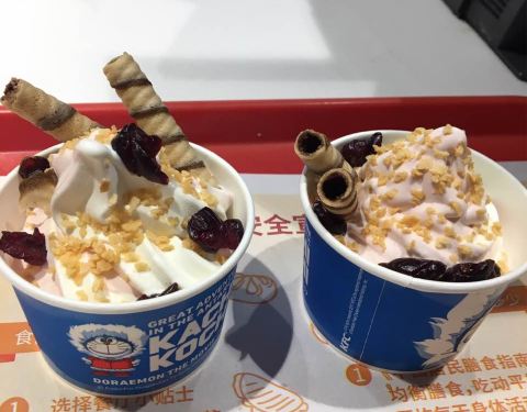 新出了一款哆啦A梦限定杯,草莓双旋,超级好吃,也就8快,和普通的差不多的价格