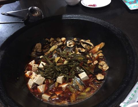 味道很不错,鱼肉很嫩很鲜,鱼汤炖豆腐炖豆角和茄子干都非常好吃,贴的小饼子很好吃,甜甜的很香,但是死面卷子差点儿,有点硬,感觉不如饼子好吃。价格很实惠,总体很好,特价熏排骨很超值,10块一盘,肉还不少...