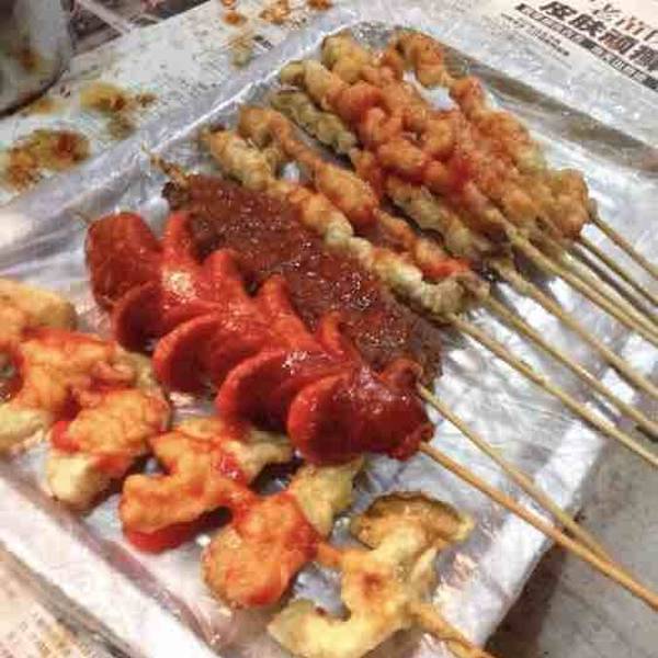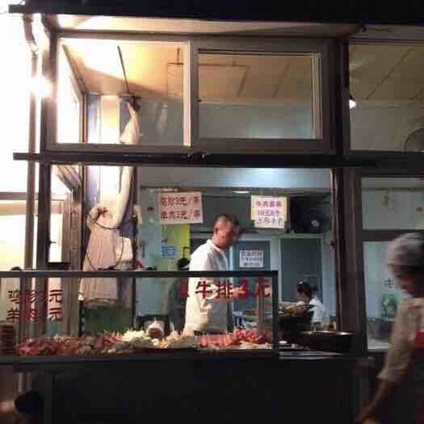 裹面的牛肉小串果然很好吃,炸蘑菇也很好,当然因为他们都蘸同样的面糊炸出来哈哈,牛排倒是觉得一般,!炸芸豆没吃到卖光了我当时去的时候已经晚上9点了,这里下午3点开始营业到晚上10点半,店家很热情,还特意提醒他家的辣酱特别辣呵呵,内什么我不怕辣的哈哈!具体位置就在同庆街和更新街的路口,药房旁边就是了~