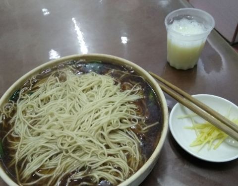 每次去镇江,下火车先去张二吃碗面,然后找酒店住下。他的面绝对镇江前三。这次是1月5日到的,踏着积雪背着包,提着麻花和书包。他的面的量是我吃过锅盖面里最大的。就是有点咸,不过有免费豆浆,我喝了三杯,狠好喝。