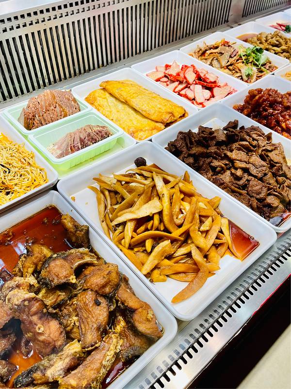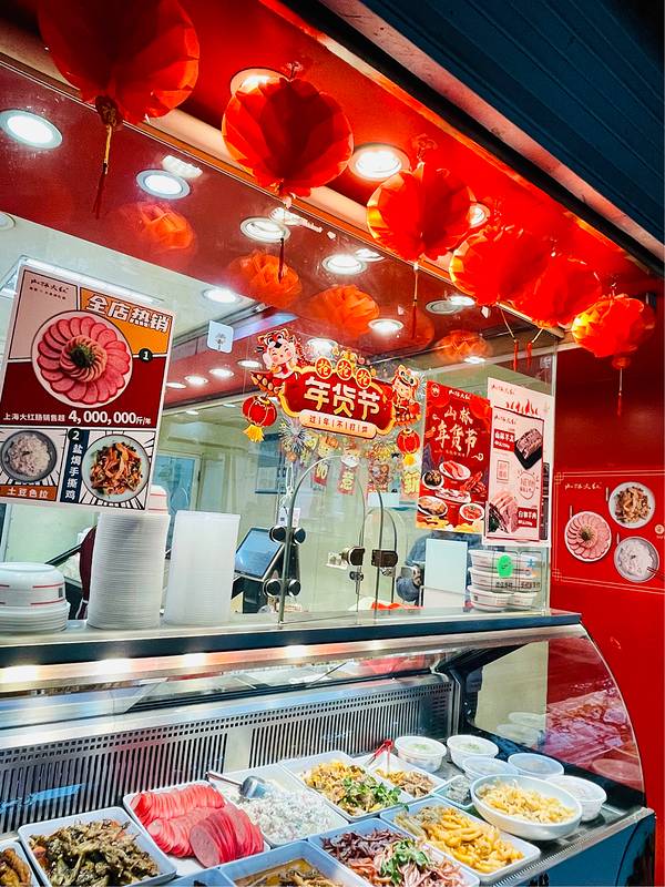 某平台团了张5元券,路过这家山林,柜台里的各式上海熟食种类很多、色味诱人。