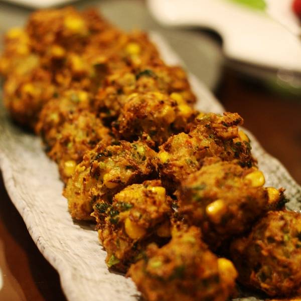 山野草丸子,东北的山野菜做的素丸子,不浸油,非常好吃,就是有点少。