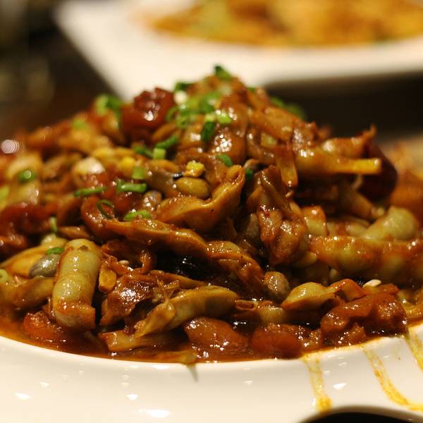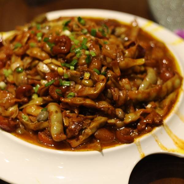 锅包肉,这家是黄桃版的,绝对比玉氏滋味馆的好吃,肉炸的好,挂汁之后皮还是脆的。特别精彩的演出