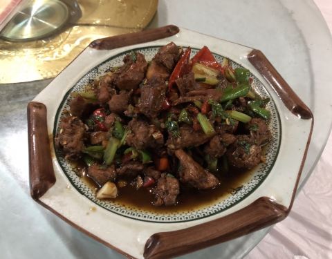 点评上很多人都推荐了这家点,而且有5星,下山之后就来这儿吃了个饭。 金沙索道下有一条街全的吃饭的,这家位置其实也不是很好,要往里走一小段。 路上几家店小哥在拉客 ,我都没理,一心就往那家走。 到了之后有点小小的失望,以为会是很大的店,其实就是个小店,不算外面摆的桌子,店里也就3个大桌,2个小桌。厨房就在外面。 不过老板娘态度很好,服务员应该就是他家姑娘,也就10岁左右。 点了4个菜,野兔88,手撕包菜14,三清小鱼38,韭菜鸡蛋饼25。总共176。 价格挺公道的,份量也还行。在景区,这真是业界良心。 不过味道,只能说是一般,就一般家常菜。 兔子我是觉得不行,骨头太多了。 总体还是不错,在景区能吃这样一餐,真心很划算。 三清山真是目前见过很良心的景区了,价格很公道。 但是如果我下次再来,我应该会选其它家,因为我觉得其他家应该也差不会,路口的几家环境还是要好一些。