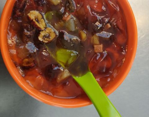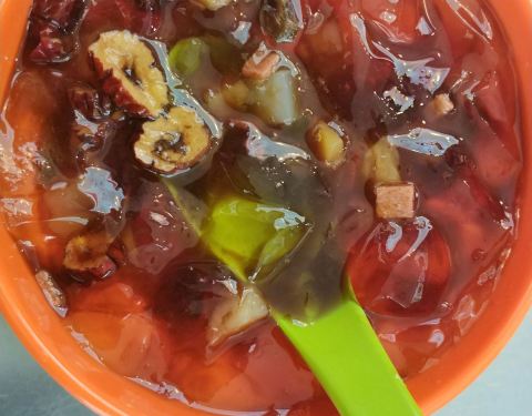 五彩冰粉真是好啊!一看就知道是不可多得的美味,里面的内容太丰富了,红枣、山楂、葡萄干、糍粑……家伙可真不少!冰粉也做得相当不错,十分嫩滑,柔顺爽口。整体感觉甜到了家,吃起来一口赶一口,欲罢不能,最...
