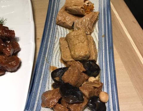 今天点的菜那个你甜我蜜里面的糯米藕和蛋酥很好吃呀!糖醋小排就算了。。。,宋嫂鱼羹当酸辣汤来喝还不错;鸡丝小馄饨下次肯定不点了;腐皮鸡毛菜味道不错,就是后厨洗菜再仔细点就好了,挑出好几根小段的捆菜的草绳。。。,因为喜欢千日贺的排骨大饼所以也点了这里的香肉卷饼这个还是好评哒^ _ ^