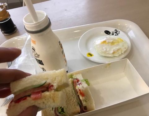 是生牛奶 完全没味道 不过还蛮纯正的 味道可以三明治里面有点青椒 之前不要吃的 这个还能接受