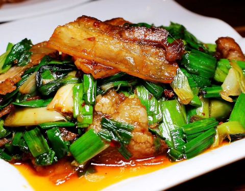 ...少许有点点烟熏味儿,蒜苗回锅肉确实很下饭,是他们家的招牌菜,粉蒸肥肠感觉还是口感硬了一点费牙口