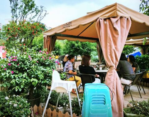 殊不知周边还有这样一个高颜值好环境的餐馆–六合居。 同事的哥哥回来成都,说是去外面吃饭,跟着他来到六合居,这边几乎都是吃饭的餐馆,离家这么近我一直不知道。 六合居在晚上特别的招眼,因为挂饰的灯笼很耀眼。 到店后外面的餐桌刚好还有一桌,可见这里的生意很好,来的时候还在说可能需要等位,因为这里的菜品味道还不错。 点菜可以根据菜单点菜,也可以直接到大厅看菜点菜,大厅里有一些菜品的成品展示,橱窗也是透明玻璃,可以看见厨师是怎么做食物的,这种透明式的菜品让顾客吃的明白,吃的放心。 室外的环境在凉爽的天气坐很舒适,盛开的花儿,可以吹吹微风,品尝着美味聊天唠嗑。如果天气好,吃饭来的早,还可以看到蓝天白云。 我们只有三个人,点的菜品不多。 双椒鱼头是越吃越辣,越辣越爽,后面添加的蔬菜面煮进去,入味很快,完美的双椒鱼汤面。 大碗猪肚开吃微辣爽口,后面是辣到流口水,感觉自己的味觉越来越承受不了辣,朋友却吃的过瘾,还好有冰凉的鲜榨西瓜汁,不然我是吃不了的。 点了一个不辣的菜品就是土豆配蔬菜粥,原来还有这种粥搭配,果真是只有你想不到,没有厨师做不到,土豆入口即化,不过感觉青菜的味道有点浓,还是蛮好喝的。 平时是得多在周边逛逛了,发现美食地才有好口福。