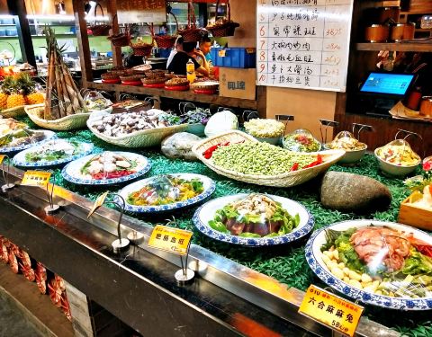 六合居的夹沙肉肥而不腻,腊排骨精选得比较好,少许有点点烟熏味儿,蒜苗回锅肉确实很下饭,是他们家的招牌菜,粉蒸肥肠感觉还是口感硬了一点费牙口。儿菜做的泡菜用了红油后很爽口,红枣炖老南瓜的品质非常好。
