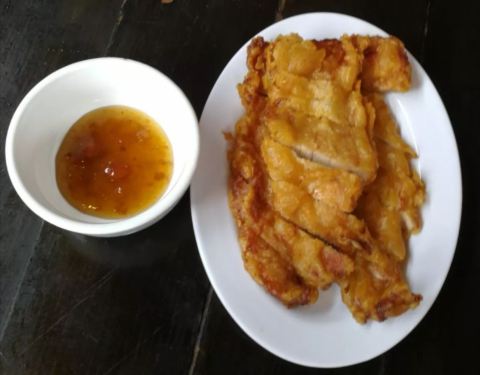 点了一只窑鸡,炸猪肉,苦瓜皮炒木耳。窑鸡扑鼻芳香,鸡肉嫩而带了点咸香,炸猪肉裹了一层厚厚的粉,炸的有点柴了。炒木耳挺清爽的,口感很不错,咸淡适中。