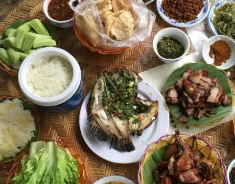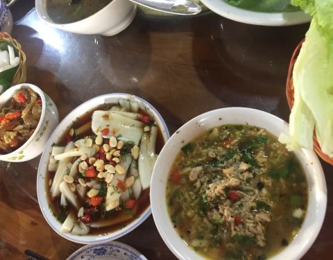 在版纳要吃老字号正宗傣味,就要到嘎洒镇旁边曼凹餐厅。门口可以停车,我们一行人驱车闻香前往,一座二层傣家竹楼,可容纳三百人同时就餐。上座后不一会琳琅满目的傣家美食呈现在各位面前,光看和闻就让大家垂涎...