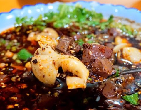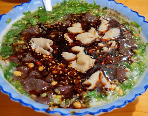 11月最后一天,寻找秋天,去看银杏叶子, 吃饭也非常重要, 选一家当地有特色的店,更重要。 跟着导航来到店面 店面很低调,很普通 想不到还是当地排名第二的小吃店 从我喜欢的菜品来写 第一,肥肠血旺 血很好,肥肠又耙又香,整体都非常入味,为什么那么喜欢它,因为拿来拌饭我吃了两碗,真心觉得拌饭太好吃了,正好天气冷,吃了两碗血旺拌饭这个人都从里到外的舒服。 第二,肥肠粉 粉是那种很细的那种,筷子很容易夹断,说明粉是很好的,至少没有加什么乱七八糟的东西,吃完粉丝的汤底也好喝,小伙伴捧起碗就整,喝完来一个完美的感叹,哇。安逸。 第三拌菜,味道都不错,肠头比拐肉更满意,我觉得拐肉有点少。