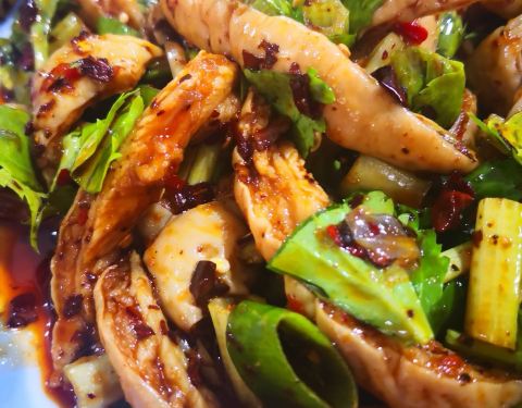 牛肉切薄片,蘸水够巴适,怎么都好吃。 【拌肠头】30,比起肥肠,肠头口感更软,而且没有那种味儿