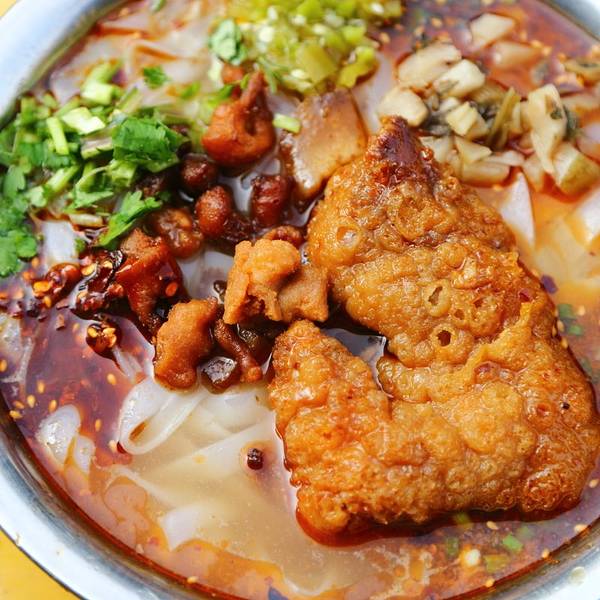 逛完,就直奔午饭了 铁桥头老牌红烧猪脚粉 昨天就打过样了 也挺巧,过去的时候,刚好一辆火车经过 颠覆形象的红烧猪手 炸透走油,浸润在汤汁里 没有油腻,只有胶质 搭配这里的“东坡肉” 猪油渣、面粉和糖制成 有点脆麻花和脆哨的感觉 一软一硬,很有意思 但是怎么说呢,少了点肉,还是有点不习惯的 老板娘很热情 聊了几句还给我多加了一把东坡肉 嗯,bie
