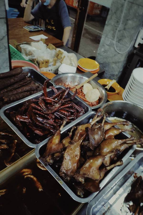 拌面,扁肉的搭配是多少人的回忆。沙县的沙县小吃就跟小时候的味道特别的像,不知道从什么时候开始,吃到的沙县小吃不是花生酱特别的腻,就是扁肉的汤头感觉有点奇怪的味道,渐渐和小时候的回忆重叠不到一起。在李记吃到的沙县小吃就和记忆里的味道一模一样,味道虽然不是特别的经验,但会在一瞬间想到小时候发生的事情,而且最重要的是它不会腻!除了拌面扁肉,比较推荐的是上面的笋包肉和金包银,一个是光兵夹着酸笋,一个是豆腐中间挖空放入肉。两者的口感都特别的丰富且有层次感,而且不知道为什么,虽然口味偏重,但不会腻。李记沙县小吃的知名度挺高的,里面点餐的方式就是对着他们摆出来的小吃里挑就是了。沙县不知道为什么到处都在卖板鸭,但因为同行小伙伴里有一个是南平人,家离沙县特别的近,按照他的说法是,其实板鸭是他们那的特产,所以我们也就没尝试这里的板鸭,而是把它留在南平。