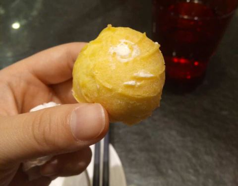 榴莲雪媚娘,榴莲果肉蛮多的,老婆的最爱!路过徐东必吃,哈哈(^_^),泡芙也不错!!!!