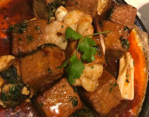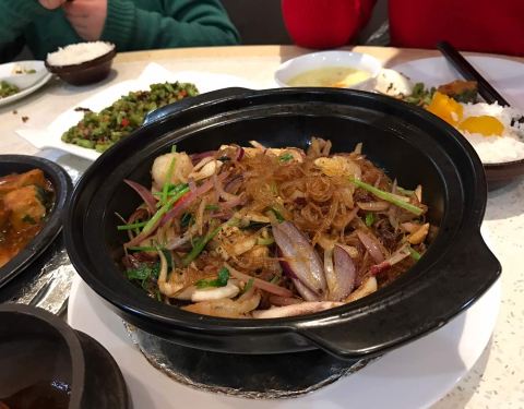 这家店其实很多年以前就知道了但是经过多次也却没吃过,这次也是为了某活动积分到这里吃午餐,之前看过评价都是很不错的,价格也很实惠,不过这次亲身体验过才知道价格涨了不少,好在味道还不错,餐厅服务也可以,就是有些菜的量实在是好少。煲仔饭等的时间略久,他家的铁板豆腐很好吃,甜甜的,配料有少许虾仁,底部铺了层蛋皮,豆腐底部还蘸有荠菜末比较特别,这家除了性价比不是太高外其他都还可以。