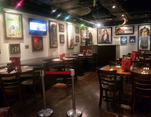 从外表看就一眼能看的出是家美式餐厅,略微带有摇滚气息的装修和布置,加上美式特有的红砖墙,辨识度很高。牛排用的是比较低端的肉类,纯粹是以量取胜。