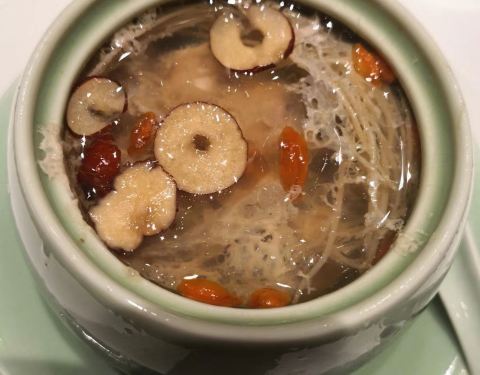 菜品质量还是很不错的。环境很好很有意境,服务也不错,菜品足够丰富,一落座没多久就会有果盘端上来,水果新鲜,用的种类也好;鱼子酱芝士蜜瓜男票觉得不错,鲍鱼炖土鸡味道不错,就是感觉不是土鸡而是排骨?鳕...菜品质量还是很不错的。环境很好很有意境,服务也不错,菜品足够丰富,一落座没多久就会有果盘端上来,水果新鲜,用的种类也好;鱼子酱芝士蜜瓜男票觉得不错,鲍鱼炖土鸡味道不错,就是感觉不是土鸡而是排骨?鳕鱼较一般,没有特别的印象;法式小澳龙还不错,芝士很浓郁,龙虾新鲜肉质好;蟹黄豆腐不错,汤汁浓,烤鸭也不错的,既有夹肉的饼又有皮可以包着吃,木瓜雪蛤也不错,所有菜吃下来体验还挺好的。