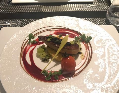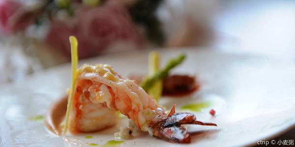 门头低调,私密性不错。明虾法式鹅肝套餐和明虾海陆套餐是主打菜品。主菜法式鹅肝是经典的单面铁板煎,淋上红酒佐味,入口微带甜,舌尖一抵即化。明虾和芦笋做搭配,虾保持了弹性,浇上特调的酱汁,淡淡的芥末味道。菜品摆盘也很讲究。