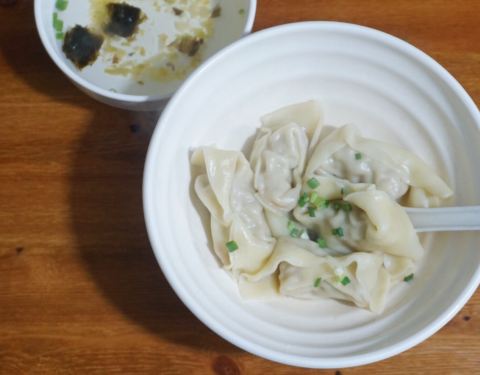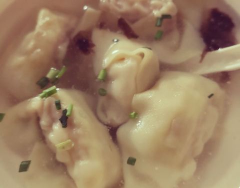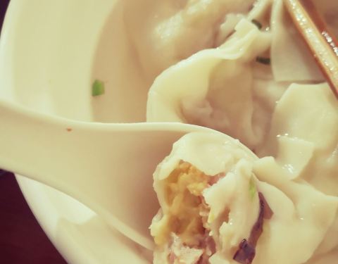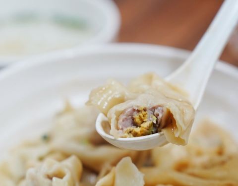 - 小馄饨的皮薄薄嫩嫩的,带汤喝最好吃了!咬开是满满的肉馅和一大颗沙沙的咸蛋黄,超级过瘾