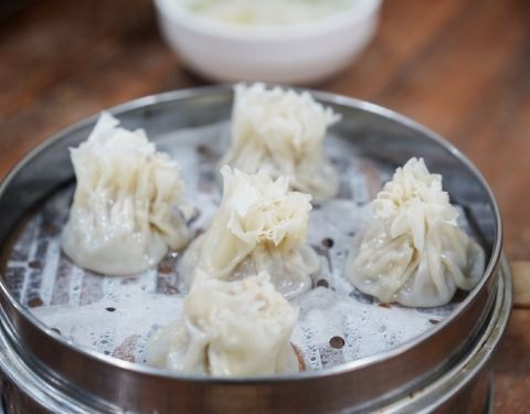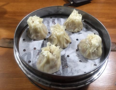 带着小伙伴来大关吃有名的蕙心烧麦和馄饨,在德苑路上。两个人,点了一碗蛋黄大馄饨,一碗干捞笋尖小馄饨,两份笋尖鲜肉烧麦。店里生意很好,只能跟人家拼桌。蛋黄大馄饨,里面放了咸蛋黄,沙沙的,很好吃。笋尖小馄饨,要了干捞的,小馄饨个头也不小。笋尖烧麦,一定要趁热吃,冷了烧麦皮就会粘在纸上,烧麦里的汤很鲜美。两个人吃的很撑,还打包了10个生烧麦回家。