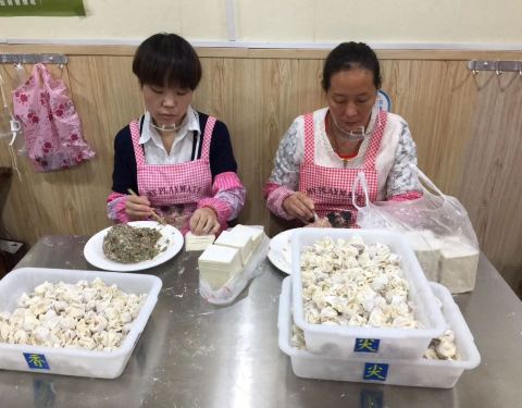 隐藏在大关居民楼边上的蕙心,如果不是在大众点评网上看到好多大V的好评,住在附近多年的我根本不知道有这样一家店。 沿着德苑路一直往里面走,看到大关科普公园,再往前走一会儿就能看到。 店里环境一般,毕竟来这里不是吃环境的。晚饭时间生意真好,拼桌都要找位置。 大馄饨,小馄饨,烧卖都是现包的,价格不贵。要了一笼笋尖烧卖,等了好一会儿才送过来。 筷子,碗碟,要自己去拿。烧卖个头很大,比景芳周大姐的烧卖大了一半,味道也不错。配了碗汤,味道很淡。 下次过来吃好评如潮的蛋黄大馄饨。