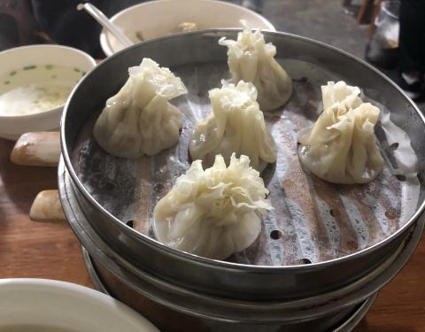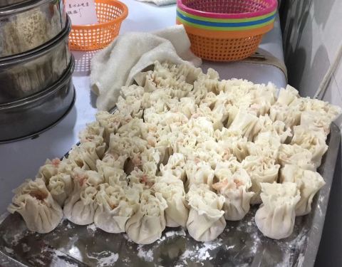 小路边的店铺,店小人多,桌椅都给摆到外边了啊,工作日的正午来的,需要拼桌,环境略欠。 点餐会给号子,找好位置等着就行,价格还算亲民。点了烧麦,超大馄饨,等了十来分钟。 口味方面,烧麦不错,皮蛮薄的,笋蛮多的,超大馄饨不行,大是真大,但皮好厚,还是应该点小馄饨。
