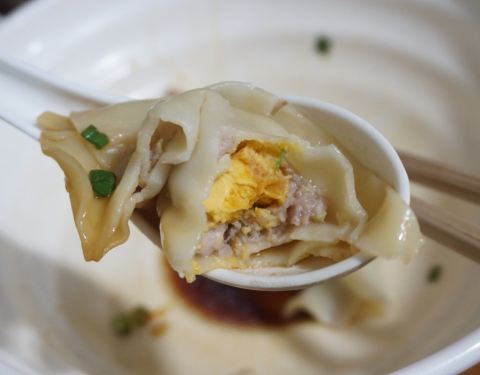 小馄饨的皮薄薄嫩嫩的,带汤喝最好吃了!咬开是满满的肉馅和一大颗沙沙的咸蛋黄,超级过瘾