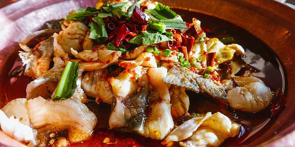 🐟秘制雪山鱼:简直太好吃了,五星推荐!!雪山鱼的鱼皮很厚,肉质非常紧实Q弹,鱼片入口滑嫩,虽然刺比较多,但都是大刺。可以做成不同的辣度,我们要的是微辣,稍微带酸甜口,泡菜做配菜,好吃又下饭!向来不爱吃鱼的我,居然吃到见了锅底🤦🏻♀️