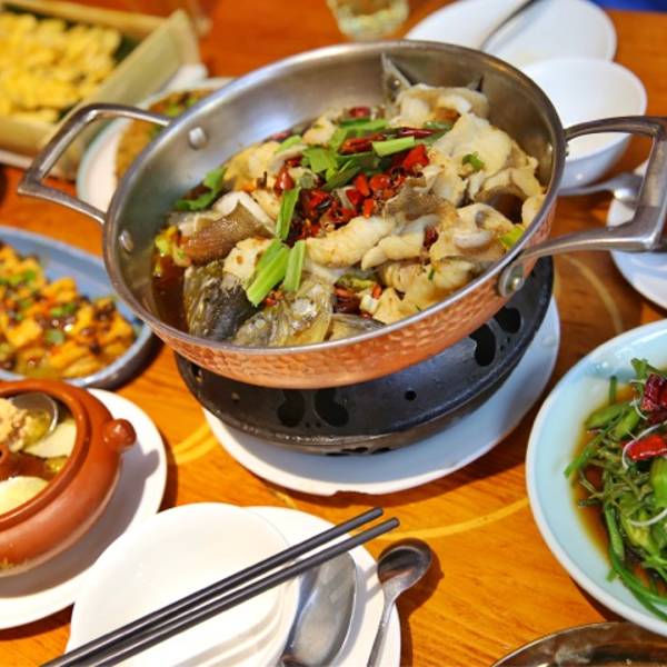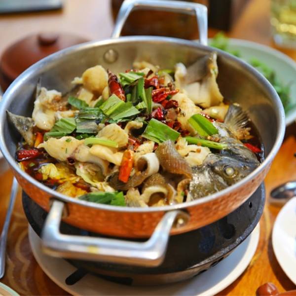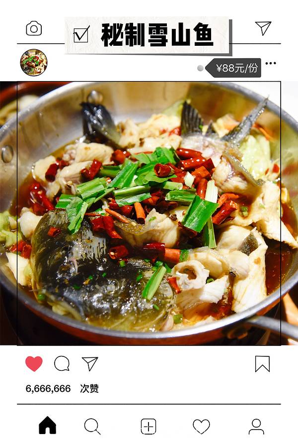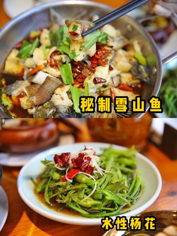 秘制雪山鱼:简直太好吃了,五星推荐!!雪山鱼的鱼皮很厚,肉质非常紧实Q弹,鱼片入口滑嫩,虽然刺比较多,但都是大刺。可以做成不同的辣度,我们要的是微辣,稍微带酸甜口,泡菜做配菜,好吃又下饭!向来不爱吃鱼的我,居然吃到见了锅底自磨泉水豆腐:外酥里嫩,还带着淡淡的蛋香,配上鲜美酱汁,非常美味!野生松茸菌汽锅鸡:松茸新鲜,鸡肉滑嫩,汤汁鲜美,虽然点了小份,但是料超足,里面还有竹笙、香菇、鹌鹑蛋等,来上一盅真的是超滋补~五彩鸡丝米线:凉拌米线,配料非常风度,浇少酸辣的酱汁,非常开胃。葱油水性杨花:以前只知道水性杨花很好看,没想到居然还能吃,而且很好吃!炒得很烂,一点儿都不老,连家里不爱吃菜的小丫头都吃了小半碗!