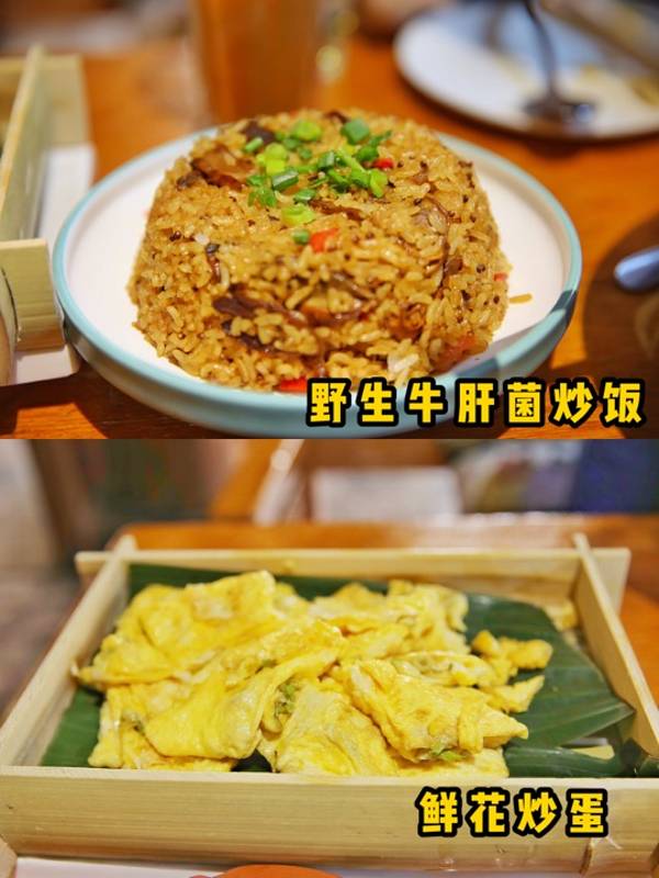 🍚野生黑松茸蛋炒饭:除了鸡蛋米饭,还有超多蚕豆,黑松茸的味道非常浓郁,可见店家用料之大方~