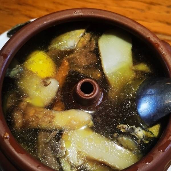 汽水凝结而成的汤,配上鸡肉的鲜美和松茸独特的香味,味道浓郁不油腻,汤汁味道清淡,就是为了避免调料的味道覆盖住鸡肉和松茸原本的鲜美。